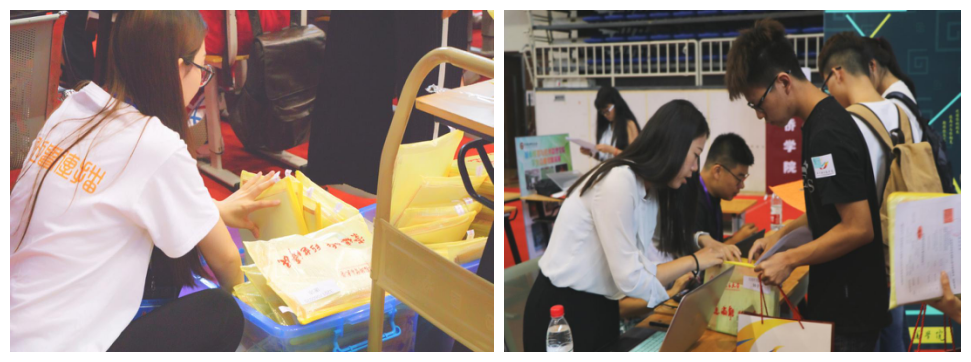 接着,新同学走进体育馆内,来到赢家娱乐城 的报到区域,依次排队领取赢家娱乐城 为新生准备的资料袋,内含新生手册、学生卡、登记表、校徽、校园地图及宿舍钥匙等重要物品。在此过程中,学团志愿者悉心为新同学们标记重要的时间、地点,提示他们需要注意的活动事项,并耐心解答他们的疑惑。